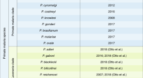 Comparative genomics of all known Laverania species that infect African great apes reveals interspecies gene transfer and convergent evolution, and identifies features of Plasmodium falciparum, the only human-infective species within this subgenus, that may have led to its speciation and spread globally.