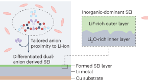 The solvation structure of an electrolyte and the resulting interphase are crucial for lithium-metal battery performance. Now, an electrochemically inert diluent, designed to selectively interact with electrolyte anions, aids in the formation of an inorganic-rich bilayer interphase, thereby improving cyclability and extending calendar life.