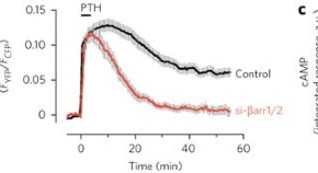 • Going against the classical model of β-arrestin–mediated internalization and downregulation of GPCRs, FRET, FRAP and time-lapse imaging show that PTHR remains active when bound to β-arrestin and is ultimately terminated by retromer complex, a complex involved in transport from endosomes to the Golgi.