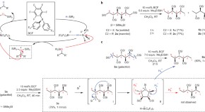 Biorenewable carbohydrate feedstocks can be efficiently converted into a diverse set of oxygen-functionalized chiral synthons using a combination of a tertiary silane and the catalyst B(C6F5)3. The deoxygenation mechanism involves cyclic intermediates, which provide a means of controlling chemo- and diastereoselectivity.