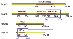 A new study reports the hUpf2-hUpf3b interaction domain structure and provides the first structural insight into the core of the nonsense-mediated decay pathway. Surprisingly, the RNA-recognition motif of hUpf3b, a domain typically involved in RNA binding, constitutes instead an interaction surface for hUpf2.