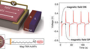 Developing a new technique/method and/or mechanism for separating ionic charges is critical to the fabrication of a high-performance nanogenerator. Here, we demonstrate that the magnetic force can be used to drive the movement and separation of charges within metal nanoparticles film when these nanoparticles are functionalize with charged magnetic ligands. Placing the magnetic field induces the gradient distribution of magnetic counterions which subsequently transforms into the electric potential and outputs electrical energy.