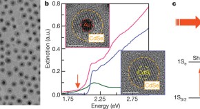 Light–matter interactions in semiconductors hold great promise for numerous applications, but as device size is reduced such interactions typically weaken, potentially posing problems for applications at the nanoscale. Here the authors circumvent these limitations by producing colloidal particles with metallic cores and semiconducting shells, in which coupling of the plasmons in the metal to the excitons in the semiconductor is engineered to enhance light–matter interactions in the particle.