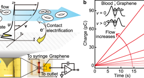 Electrical nano-sensors hold promise for biofluid interrogation, but their performance is still below the state of the art. Here, self-powered monolayer graphene microelectrodes are shown to enable real-time interrogation of whole-blood flows with 6-month stability and sub-micron/second resolution.
