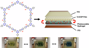 Viologen-based 2D ionic covalent organic polymer (V-iCOP) thin films are synthesized via the Zincke reaction using three different linkers with varying electron affinities. The structural and electronic effects of the different linkers on the electrochromic device (ECD) performances are investigated and compared with theoretical DFT calculations. Due to the cationic viologen moiety, the V-iCOP films promote fast ionic diffusion with photocurable hydrogel electrolyte, with the ECD resulting in rapid switching (<10 s), high coloration efficiency (up to 836.08 cm² C⁻¹), low operating bias, multichromic behavior, and long-term cycling stability (92.5% retention after 2000 cycles).