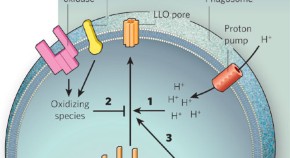 • Listeria monocytogenes multiplies rapidly in the cytosol of infected cells, but has also been found in intracellular vacuoles during persistent infection. Now, these vacuoles are described as sites of comparably slow bacterial replication, which may promote bacterial survival in face of the host immune response.