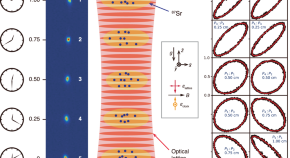 Testing general relativity with optical clocks is important both as a fundamental test and for metrological applications. Here, a vertical linear array of 5 separate ensembles of strontium atoms trapped in a single optical lattice is used to perform a blinded lab-based test of the gravitational redshift at the mm to cm scale.