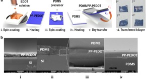 A photothermally foldable soft bimorph was prepared by dry transfer of poly(3,4-ethylenedioxythiophene)s (PEDOT) onto poly(dimethylsiloxane) film. The reversible folding nature of the soft bimorph was programmable to convert the two-dimensional (2D) array of bimorph into complex three-dimensional (3D) architectures such as Venus flytrap under light. These 3D structures were returned reversibly to the original unfolded 2D structures under dark. The Venus flytrap could perform a task to snap and move an object within few second of near-infrared exposure. A localized heat pocket was generated inside the folding structure due to the large photothermal effect of PEDOT.