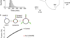 Regulated exocytosis of neuronal synaptic vesicles is substantially faster than that of endocrine dense core vesicles despite similar molecular machineries. Here authors compare SNARE-mediated fusion of purified synaptic vesicles with insulin vesicles and see disparities in calcium-triggered fusion rates.