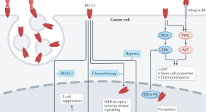 Antibodies targeting PD-1 or its ligand PD-L1 have revolutionized cancer therapy. Increased understanding of the mechanisms regulating PD-L1 has revealed links with several important oncogenic signalling pathways. Herein, the authors review the transcriptional, post-transcriptional and translational regulation of PD-L1 expression in cancers as well as the diverse post-translational modifications, including phosphorylation, palmitoylation, glycosylation, acetylation and ubiquitination, that affect PD-L1 stability and activity. They also discuss the possibility to simultaneously target key oncogenic pathways and modulate PD-L1 expression using small-molecule agents, which have potential advantages over or might synergize with anti-PD-1/PD-L1 antibodies.