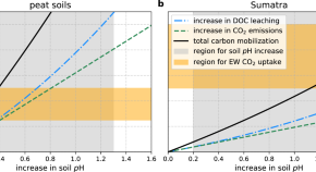Enhanced weathering in tropical peatlands may be an ineffective carbon dioxide removal strategy due to pH-induced increases in soil carbon leaching which lead to increased re-emission of carbon, according to model calculations constrained by observations from Sumatra, Indonesia.