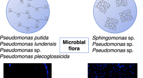 Continuous phenol (PhOH) decomposition experiments were carried out with PhOH-degrading bacteria immobilized in a copolymerized spherical hydrogel (ENTG-co-PSβCyD) and a mixed spherical hydrogel (ENTG-mix-βCyD/HDI). Similar to the results obtained from the batch PhOH degradation experiments, both β-CyD-containing spherical hydrogels, which feature cylindrical hydrophobic intramolecular spaces, exhibited higher activity than the ENTG spherical hydrogels lacking β-CyD. The bacterial cells were extensively distributed on the surface and inside the copolymerized carrier and throughout the entire mixed carrier, while only a small amount of bacteria were found on the surface of the ENTG carrier. Furthermore, the PhOH-degrading bacterial flora (microflora) in the copolymerized and mixed spherical gel matrices were identified. Pseudomonas putida formed a niche in the copolymerized spherical hydrogel, and Sphingomonas sp. formed a niche in the mixed hydrogel. In the continuous PhOH degradation experiment, the performance of both hydrogels was almost identical because the ability of both strains to degrade PhOH is similar. However, in the batch removal experiment using p-xylene as the substrate instead of PhOH, the rates of substrate removal by the copolymerized gel and mixed gel 2.4 times and 1.6 times greater than that of the ENTG gel, respectively. This occurred because the bacterial species in the mixed gel was Sphingomonas sp. instead of P. putida, and the high substrate removal by the copolymerized gel was a result of the high reactivity of P. putida.