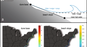 This study provides field evidence of the existence, magnitude and formative processes of a sea-level-rise hotspot located in one of the world’s most densely populated coastal areas encompassing Boston, Providence, New York City, Philadelphia, Baltimore and Norfolk Virginia Beach.