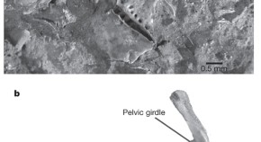 The placoderms were a large and diverse group of distinctive fossil fishes, now thought to be the most primitive known vertebrates with jaws. Placoderm fossils from the Late Devonian Gogo Formation of Australia (about 380 million years ago) show a new species of placoderm, the specimen preserved with a single, large embryo connected to the adult by a mineralized remnant of an umbilical cord.