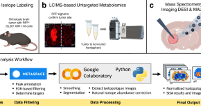 • Isotopologue spectral analysis was originally designed to assess metabolic fluxes from bulk samples. Here, the authors adapted this approach to infer fluxes from discrete regions in tissue by using mass spectrometry imaging, showing increased fatty acid synthesis flux in brain tumors of mice.