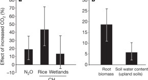 • Rice cultivation is one of the largest anthropogenic sources of the greenhouse gas methane. Now a meta-analysis shows that increased atmospheric CO2 (550–743 ppmV) and climate warming (+0.8 °C to +6 °C) can be expected to significantly increase the yield-scaled greenhouse-gas emissions of rice.