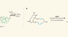 • The biosynthetic route to a naturally occurring insecticide, spinosyn A, has been established. One of the enzymes involved might catalyse a reaction that, although widely used by chemists, has proved elusive in nature. See Letter p.109