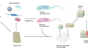 • A prototypical biocomposite block comprising a blend of bacteria, fungi and feedstock can be assembled into human-sized, living structures with self-healing and environmental sensing capabilities.