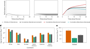 Global post-fire soil erosion accounts for approximately 8.1 ± 0.72 Pg per year, or 19%, of total global soil erosion, and Africa is the most impacted continent given its larger burned area, according to a global assessment of soil erosion produced by wildfires over the last 18 years.