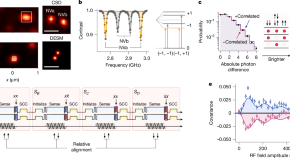 • Controlling pairs of nitrogen vacancy centres enables the measurement of magnetic correlations below the optical diffraction limit, and the use of entangled pairs shows a linear scaling of the measurement sensitivity with readout noise, as opposed to the quadratic scaling that would be obtained with unentangled spins.