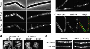 The formation of lipid domains in eukaryotic cells is controlled by the cortical actin cytoskeleton. Here, the authors show that the bacterial actin homologue MreB has a comparable activity, influencing the formation of regions of increased fluidity that determine the distribution of membrane proteins.