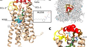 G-protein-coupled receptors (GPCRs) mediate the majority of cellular responses to hormones and neurotransmitters and are the largest group of therapeutic targets for a range of diseases. The extracellular surface (ECS) of GPCRs is diverse and therefore an ideal target for the discovery of subtype-selective drugs. Here, NMR spectroscopy is used to investigate ligand-specific conformational changes around a central structural feature in the ECS of a GPCR.