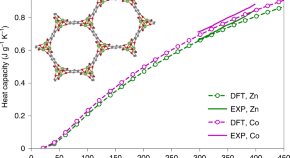 Heat capacity of nanoporous materials is important for processes such as carbon capture, as this can affect process design energy requirements. Here, a machine learning approach for heat capacity prediction, trained on density functional theory simulations, is presented and experimentally verified.
