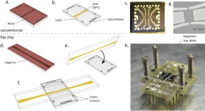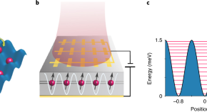 When electrons or photons are used to detect the motion of a mechanical resonator, they exert tiny forces on the resonator, subtly changing its motion. Here, through analysis of electrical noise measurements, the authors report a striking example of such back-action where electrons tunnelling through a semiconductor quantum device cause vibrations of the host crystal, which is massive compared with the electrons — an effect comparable to a flea causing metre-scale vibrations in Mount Everest.
