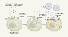 • The chirality, or handedness, of nanoparticles is shown to be a key factor in determining how well such particles engage with the immune system — a finding that might help to inform the design of vaccines and anticancer therapeutics.