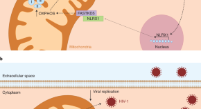 • HIV-1 infection of CD4+ T cells triggers the interaction of the mitochondrial proteins NLRX1 and FASTKD5 to promote oxidative phosphorylation, leading to increased viral replication. It has now been shown that this process can be blocked by metformin.