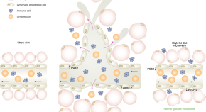When the ability of lymphatic vessels to transport fluid and macromolecules is perturbed, local adipose tissue often expands. Cao et al. identify destabilized, leaky mesenteric lymphatic vessels in obesity and demonstrate that correcting this dysfunction with a lymphatic-targeting drug improves systemic glucose metabolism.
