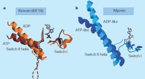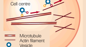 When taking a long journey, you may use a train to cover most of the distance then a bus to complete the trip. In the same way, vesicles may be carried around the cell mainly by microtubules, then finish their journey on actin filaments. For the first time, these two processes are shown to link directly by the interaction of a kinesin motor with a myosin motor.