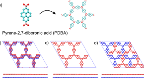 Van der Waals two dimensional materials made of graphene and covalent organic frameworks have potential for advanced electronics applications and a fundamental understanding of the formation process of these materials is desirable. Here, the authors revealed the main aspects that influence the twisted stacking growth of pyrene diboronic acid covalent organic frameworks on graphite with a hybrid molecular mechanics force field.