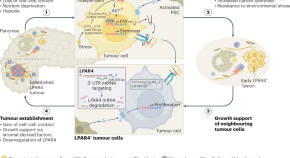 Tumour-initiating cells are resistant to challenging growth conditions during the initiation of pancreatic cancer, but how transformed cells acquire a stress-resistant, tumour-initiating state remains unclear. Here, the authors identify a signalling cascade in which LPAR4 induces fibronectin production, cancer stemness and a tumour-initiating niche.