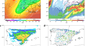 Anthropogenic climate change intensified an exceptional snowfall event termed Filomena in high-altitude northern Spain in January 2021 by up to 40%, whereas it reduced snowfall by up to 80% in lowland areas, according to analyses with a flow analogs technique and climate change attribution simulations.