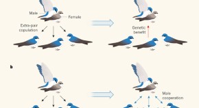 A theoretical model suggests that the cause of female-driven extra-pair mating lies in the spreading of male interests among neighbouring families, creating powerful incentives for male cooperation and concomitant benefits for females.