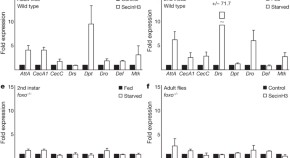 Antimicrobial peptides (AMPs) are an important class of immune effector molecules which fight pathogen infections. AMP induction in Drosophila is regulated through the activation of the Toll and immune deficiency pathways; it is now shown that AMP activation can be achieved independently of these pathways by the transcription factor FOXO. In non-infected animals, AMP genes are activated in response to nuclear FOXO activity when induced by starvation.