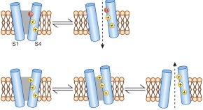 Pioneering studies in voltage-gated potassium channels have described movement of the voltage-sensing domain (VSD) S4 helix across the membrane electric field in molecular detail, but much less is known regarding opening of the intrinsic proton pore within VSDs of voltage-dependent proton channels. By systematically probing local kinematics, a new study reveals that movements in helix S1 correlate with pore opening and are distinct from voltage-sensing movements of the charged S4 segment.