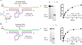 RNA viruses have been responsible for large-scale epidemics and pandemics throughout the last few centuries. Here, the authors show the design, synthesis and screening of artificial RNA endonuclease XNAzymes capable of cleaving genomic SARS-CoV-2 RNA and self-assembling into enzymatic nanostructures inhibiting cellular viral replication.