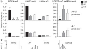 The Ink4/Arf tumour suppressor locus encodes the three potent tumour suppressors p16Ink4a, p15Ink4b and p19Arf. Here the locus is shown to be rate-limiting for reprogramming, and its transient inhibition significantly improves the generation of induced pluripotent stem cells. Furthermore, ageing is shown to upregulate the Ink4/Arf locus, with less efficient reprogramming seen in cells from old organisms.