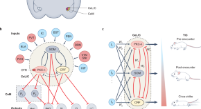 The authors show that fear conditioning induces potentiation of excitatory synapses onto somatostatin-positive inhibitory neurons in the lateral division of the central amygdala. Preventing this synaptic potentiation impairs the formation of fear memories, and activation of these neurons is necessary and sufficient for expression of fear memories.