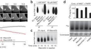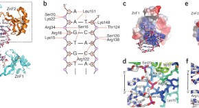 PARP1 is activated by sensing DNA damage, forming ADP-ribose chains that recruit DNA repair and chromatin remodeling factors. PARP1 recognizes DNA damage through its DNA-binding domain, which contains two zinc-finger regions (ZnF1 and ZnF2). The crystal structure of human PARP1-DBD bound to a DNA break reveals a dimeric arrangement, in which ZnF1 from one monomer interacts with ZnF2 from the other monomer, to recognize the DNA strand break.