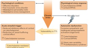 Takotsubo syndrome is often thought to be the result of catecholamine-mediated myocardial stunning triggered by emotional or physiological stress. In this Perspectives article, Kastaun and colleagues discuss the latest studies evaluating the psychoneuroendocrinological and psychosocial mechanisms underlying the pathophysiology of Takotsubo syndrome.