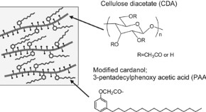 We developed advanced cellulose-based resin composites consisting of cardanol-bonded cellulose diacetate (CDA), polyester resins and glass fiber, which have high impact strength and bending strength suitable for durable products. By testing the addition of various polyester resins to the PAA-bonded CDA, we found that poly(butylene succinate adipate) (PBSA), which has flexibility and high compatibility with the PAA-bonded CDA, greatly increased its impact strength. Furthermore, adding glass fiber to the PAA-bonded CDA composites with PBSA enhanced its bending strength and impact strength.