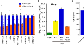 Fukuoka et al. investigate the possible role of miR-199-3p during aging, which significantly decreases in the blood of aged mice compared to young mice. They also show that miR-199-3p enhance muscle regeneration, and administering miR-199 mimics to mdx mice, a dystrophy animal model, markedly improves muscle strength of the mice, highlighting its therapeutic potential.