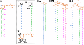 • Probing the biophysical properties of the complex lipids that form the cell envelope of Mycobacterium tuberculosis is experimentally challenging, and, at the same time, the accuracy of molecular dynamics simulations is hindered by a lack of dedicated force fields. Here, the authors develop all-atom Bacteria Lipid Force Fields (BLipidFF) for a series of representative membrane lipids, and show that they are able to capture membrane properties that are poorly described by general force fields, including the rigidity and diffusion rate of α-mycolic acid bilayers.