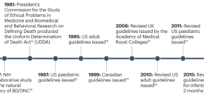 • This Review reviews changes introduced into the US brain death/death by neurological criteria (BD/DNC) guidelines in 2023 and compares these guidelines with those formulated elsewhere in the world. The authors highlight controversies and legal challenges in BD/DNC determination and discuss future research priorities.