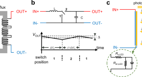 Conventional DC-DC converters rely on switching operations and energy storing components which face both noise and scaling difficulties. Here, the authors present an alternative design for a DC-to-DC converter based on closely coupled LEDs and photovoltaic cells, which exhibits high efficiency, low noise, and miniaturizability.