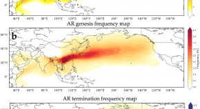 Five main routes of atmospheric rivers, originating from East Asia and ending in western North America or Alaska, exist over the North Pacific, according to the machine learning clustering analysis of the atmospheric rivers’ main routes and their seasonal and interannual variations.