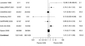Stenting is being used increasingly for the treatment of carotid artery stenosis, but it is still unknown whether it is as safe and successful as carotid endarterectomy—the standard treatment for symptomatic patients with more than 50% carotid stenosis. This Review summarizes current knowledge on the effectiveness of both procedures, and provides an updated meta-analysis based on data from randomized trials.
